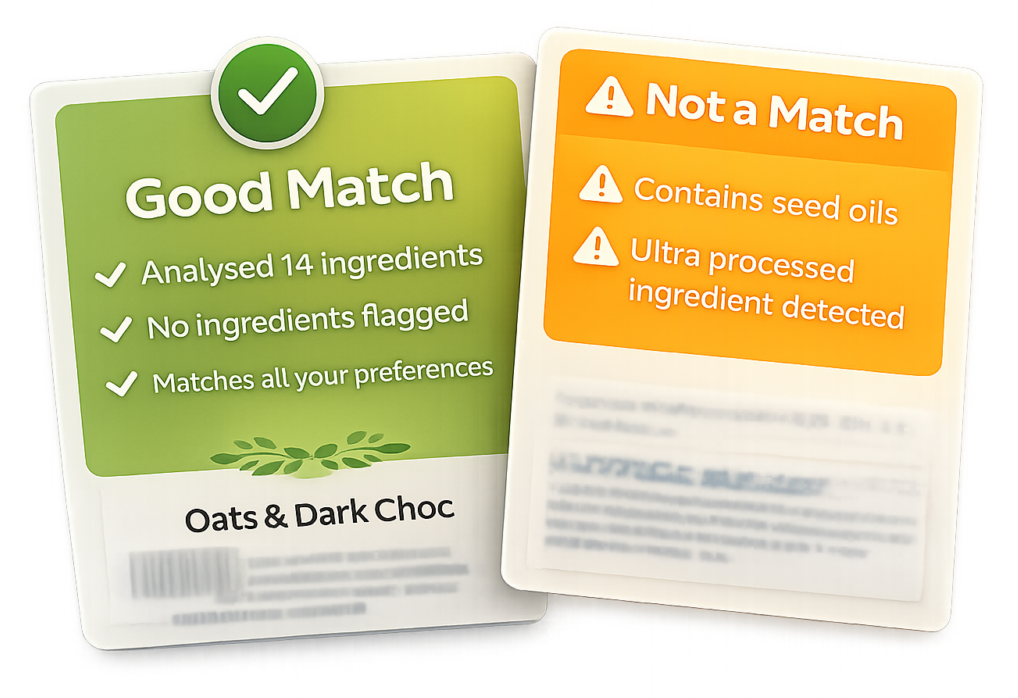 Quickly see if a product fits your food values.